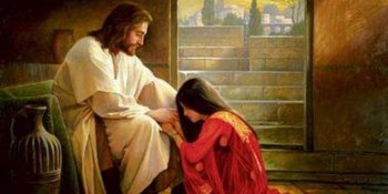 Šest dana prije Pashe dođe Isus u Betaniju gdje bijaše Lazar koga je Isus uskrisio od mrtvih. Ondje mu prirediše večeru. Marta posluživaše, a Lazar bijaše jedan od njegovih sustolnika. Tada Marija uzme libru prave dragocjene narodne pomasti, pomaže Isusu noge i otare ih svojom kosom. I sva se kuća napuni mirisom pomasti.