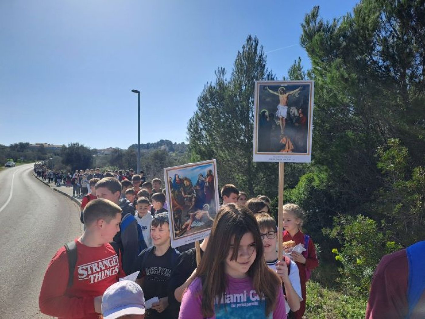 Oko tri stotine djece u pratnji vjeroučitelja i roditelja okupilo se kraj špilje Gospe Lurdske u Lumbardi te su nastavili hodati glavnim putem do Pastoralnog centra sv. Antuna u Korčuli, moleći križni put „za svu djecu koja trpe – za djecu koja su bolesna, gladna, sama ili uplašena“, da im Isus bude blizu i da osjete da ih on voli i da nikada nisu sami.