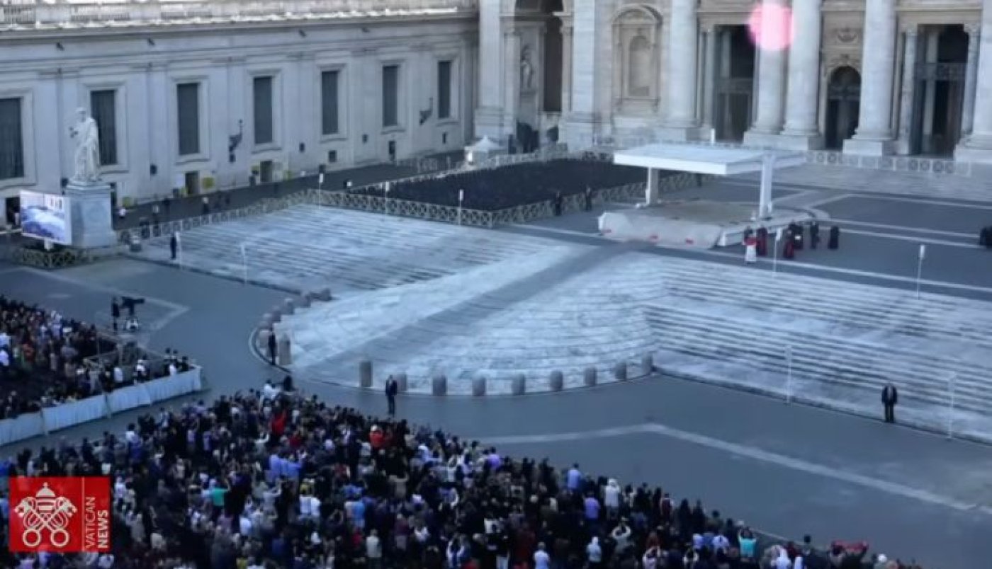 Oko deset tisuća vjernika okupilo se u bazilici i na Trgu sv. Petra na bdjenju u molitvi, koje je Papa najavio u svojoj uskrsnoj poruci Urbi et Orbi, u 18 sati po rimskom vremenu. Ulaznice nisu bile potrebne.